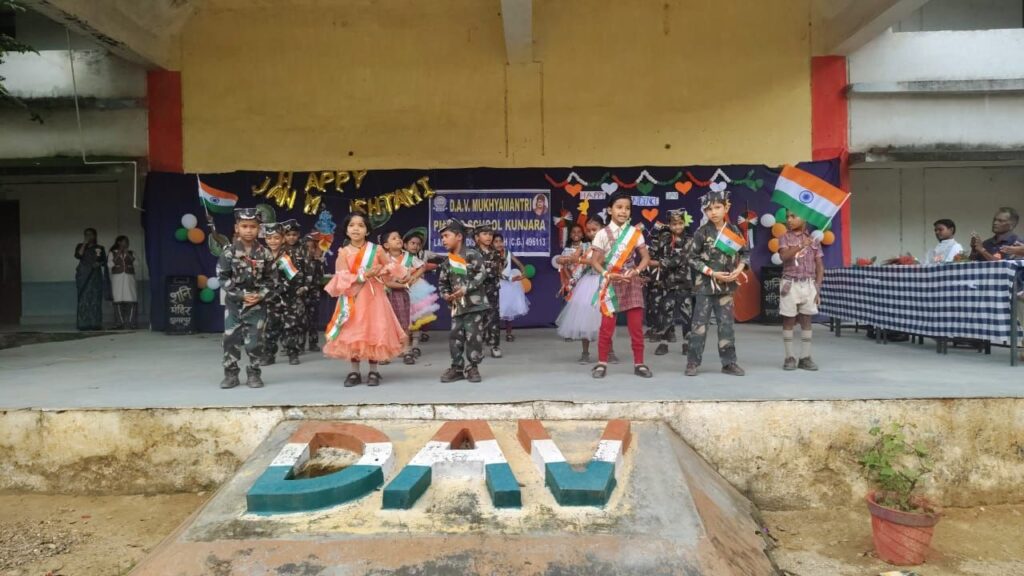 डीएवी मुख्यमंत्री पब्लिक स्कूल कुंजारा में 79 वाँ स्वतंत्रता दिवस समारोह धूमधाम से मनाया गया। इस अवसर पर मुख्य अतिथि श्री रमेश पटनायक व ग्राम-केशला के भूतपूर्व सरपंच श्री कलाकान्हू पैंकरा जी द्वारा दीप प्रज्वलन कर ध्वजारोहण किया गया। इसके पश्चात विद्यालय के छात्र-छात्राओं द्वारा देशभक्ति से संबंधित विभिन्न प्रकार के सांस्कृतिक कार्यक्रम की प्रस्तुति की गई। मुख्य अतिथि महोदय द्वारा छात्र/छात्राओं को स्वतंत्रता दिवस के महत्व और देश के लिए बलिदान देने वाले शहीदों के बारे में जानकारी दी गई। विद्यालय के प्राचार्या सुश्री अर्चना चौधरी जी द्वारा विद्यालय परिवार को स्वतंत्रता दिवस की बधाई देते हुए मुख्य अतिथियों एवं पालकों को कार्यक्रम में पधारने के लिए धन्यवाद ज्ञापित किया गया।