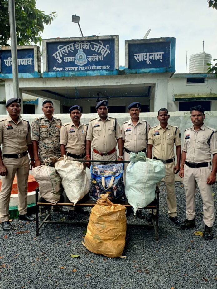26 अगस्त, रायगढ़ रायगढ़ पुलिस को शनिवार शाम एक बड़ी सफलता मिली जब पुलिस चौकी जोबी की टीम ने ग्राम कुर्रु में रहने वाली महिला अनीता बाई अगरिया के घर दबिश देकर भारी मात्रा में गांजा बरामद किया। चौकी प्रभारी जोबी सहायक उप निरीक्षक लक्ष्मी राठौर के नेतृत्व में की गई इस कार्रवाई में आरोपिया के घर से 62 पैकेट में रखा कुल 64 किलो 360 ग्राम गांजा जब्त हुआ।