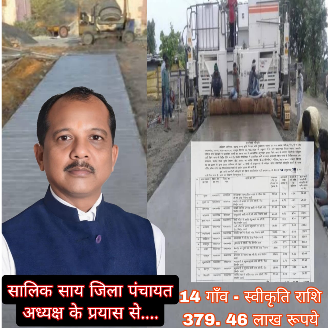 गांवों की तस्वीर बदलने आगे आए जिला पंचायत अध्यक्ष सालिक साय – 14 गांवों के लिए 379.46 लाख की सड़क स्वीकृति