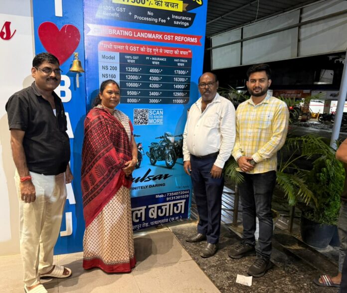पत्थलगांव में धमाका : विधायक गोमती साय पहुंची जिंदल बजाज शोरूम, ग्राहकों को मिला जीएसटी छूट का तोहफ़ा, पल्सर बाइक की हुई धड़ाधड़ डिलीवरी