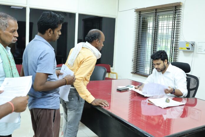 रायगढ़, 29 सितम्बर 2025/ जिला प्रशासन द्वारा प्रत्येक सोमवार को आयोजित होने वाले जनदर्शन में आज शहरी और ग्रामीण क्षेत्रों से पहुंचे आमजनों की समस्याओं को गंभीरता से सुना गया। कलेक्टर श्री मयंक चतुर्वेदी के मार्गदर्शन में अपर कलेक्टर श्री रवि राही ने कलेक्ट्रेट परिसर में आमजनों से मुलाकात की। जनदर्शन में प्राप्त प्रत्येक आवेदन का बारीकी से अवलोकन करते हुए अपर कलेक्टर श्री राही ने आवेदकों की समस्याओं, मांगों और शिकायतों को सुना। उन्होंने संबंधित अधिकारियों को स्पष्ट निर्देश दिए कि मुख्यमंत्री श्री विष्णुदेव साय के मंशानुरूप जनदर्शन के प्रकरणों को संवेदनशीलता के साथ लिया जाए और उनका समयबद्ध एवं गुणवत्तापूर्ण निराकरण सुनिश्चित किया जाए।