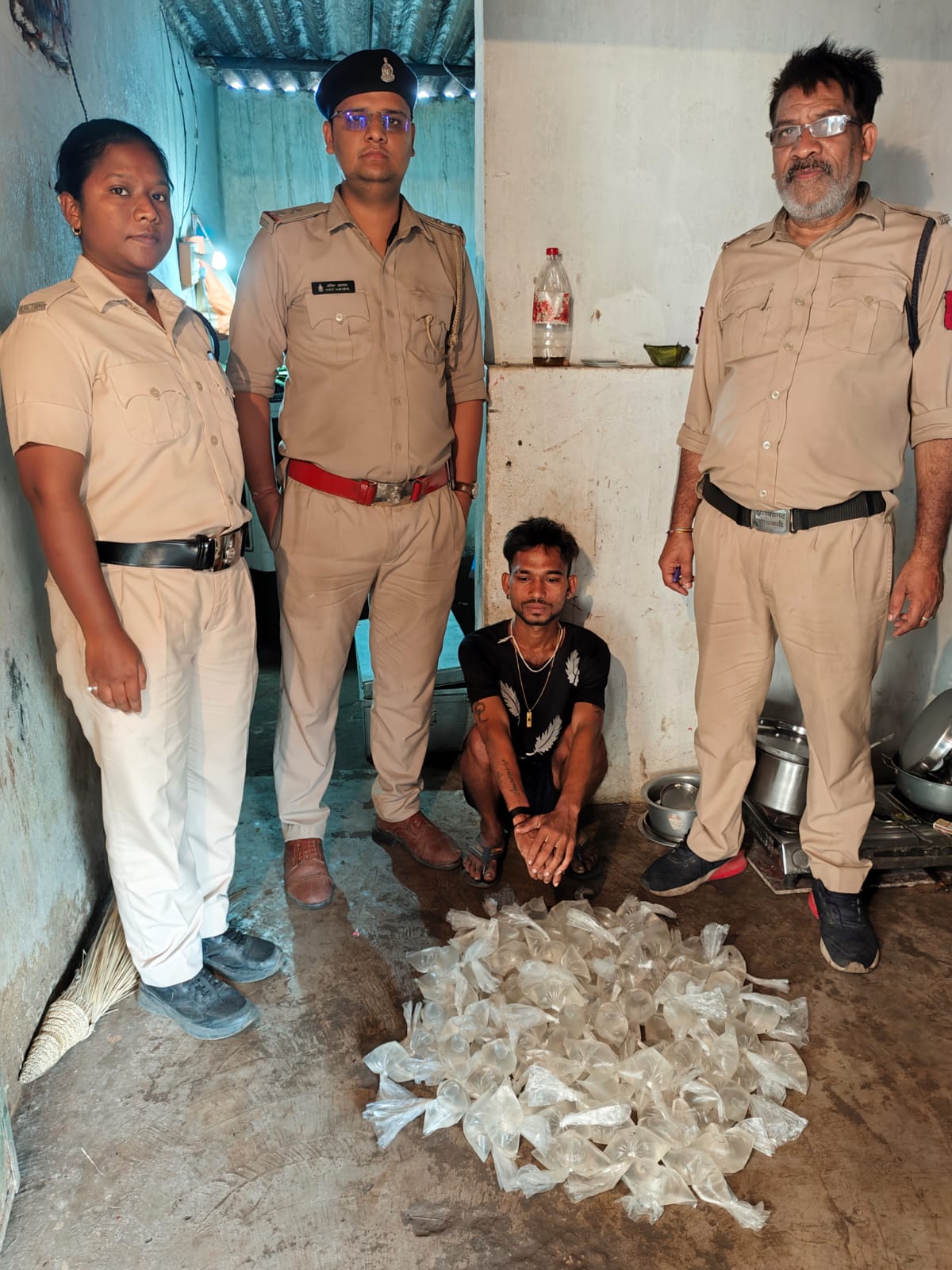 प्राप्त शिकायत के आधार पर आबकारी वृत्त-रायगढ़ (उत्तर) की टीम ने ग्राम गेरवानी, थाना पूंजीपथरा में दबिश दी। इस दौरान पोषण झरिया नामक व्यक्ति के आधिपत्य से कुल 18.720 लीटर महुआ शराब बरामद की गई। आरोपी के विरुद्ध छत्तीसगढ़ आबकारी अधिनियम 1915 की धारा 34(2), 59(क) के तहत प्रकरण क्रमांक दर्ज कर उसे न्यायिक रिमांड पर जेल भेज दिया गया है। इस कार्रवाई में आबकारी उप-निरीक्षक अंकित अग्रवाल, मुख्य आरक्षक तुलेश्वर राठौर, आरक्षक अनिशा तिर्की एवं वाहन चालक शिव गोस्वामी की सक्रिय भूमिका रही।