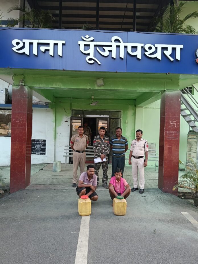 ● ग्राम बिलासखार में पूंजीपथरा पुलिस की दो कार्रवाई, 27 लीटर महुआ शराब के साथ दो आरोपी गिरफ्तार