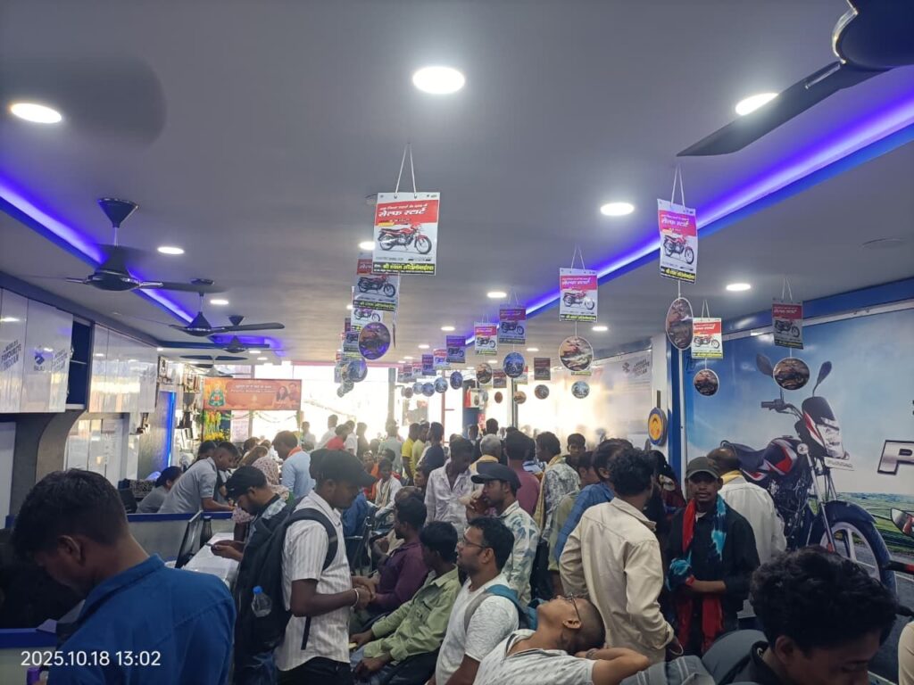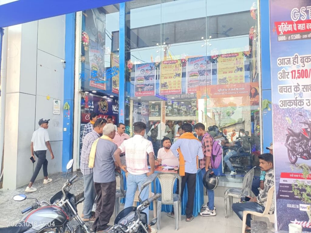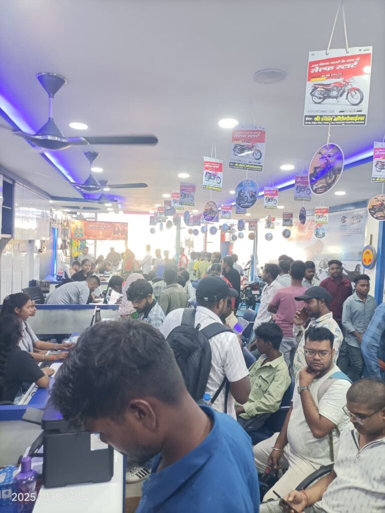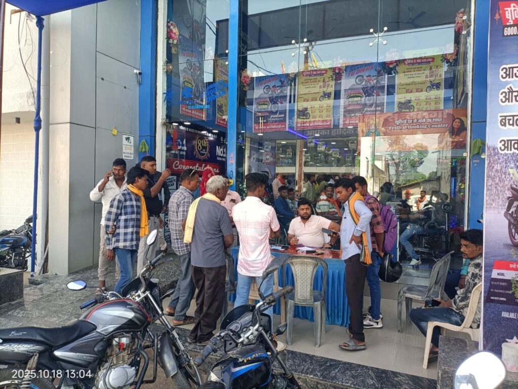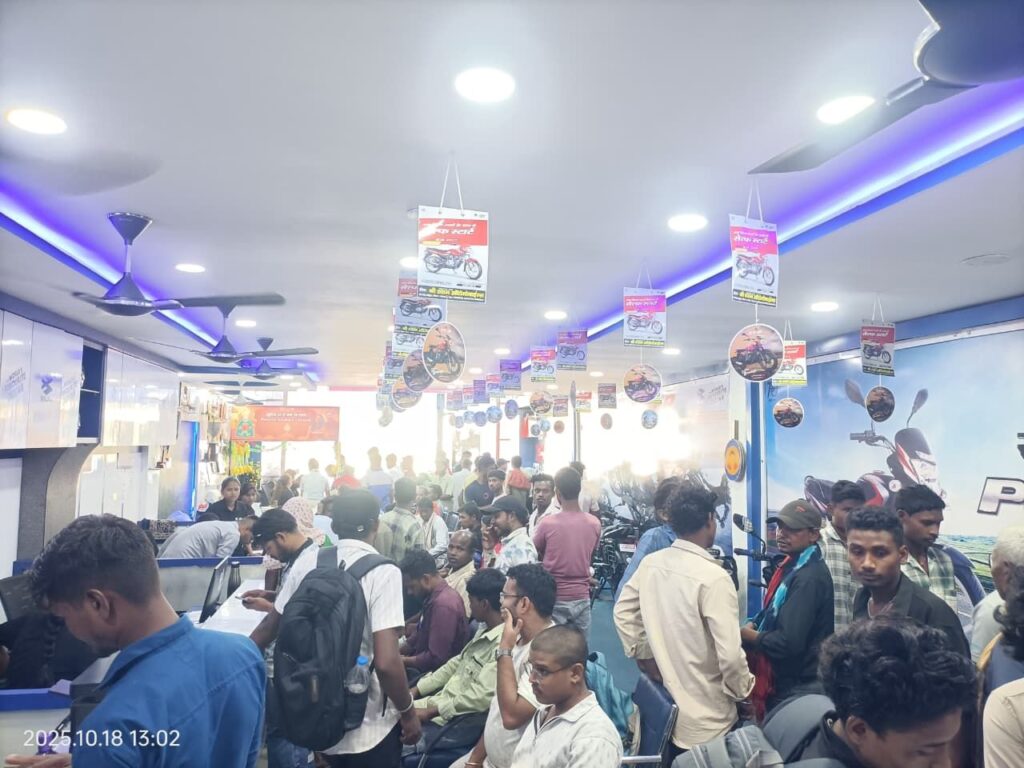 लैलूंगा। धनतेरस के शुभ अवसर पर लैलूंगा के श्री श्याम ऑटोमोबाइल्स में ऐसा नज़ारा देखने को मिला, मानो पूरा बाजार वहीं उमड़ आया हो! सुबह से ही ग्राहकों की भीड़ इतनी जबरदस्त रही कि स्टाफ को संभालना मुश्किल हो गया। हर कोई अपनी पसंदीदा बाइक या स्कूटी लेकर घर जाने की होड़ में नजर आया।