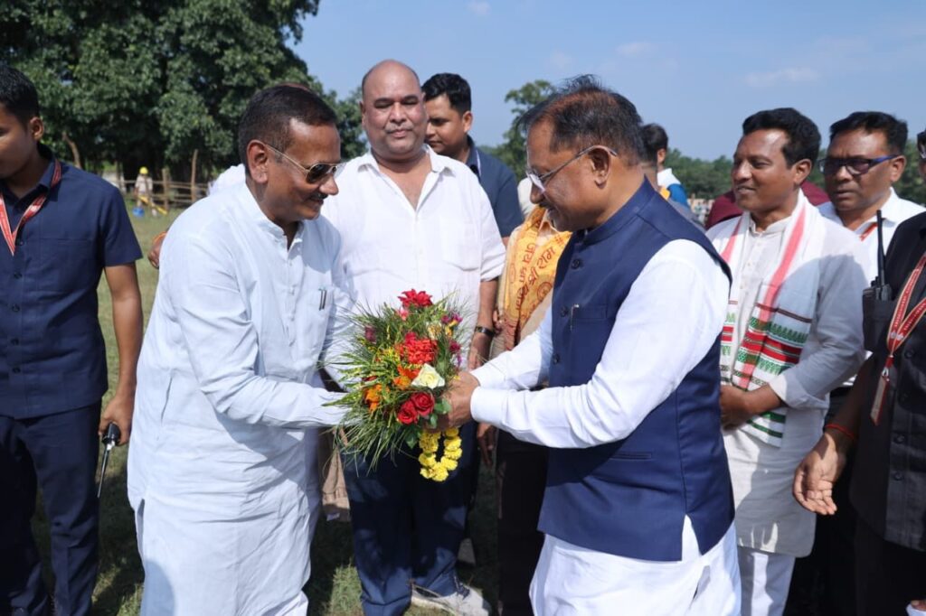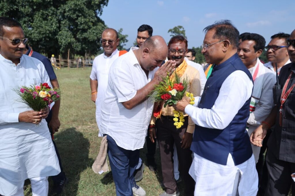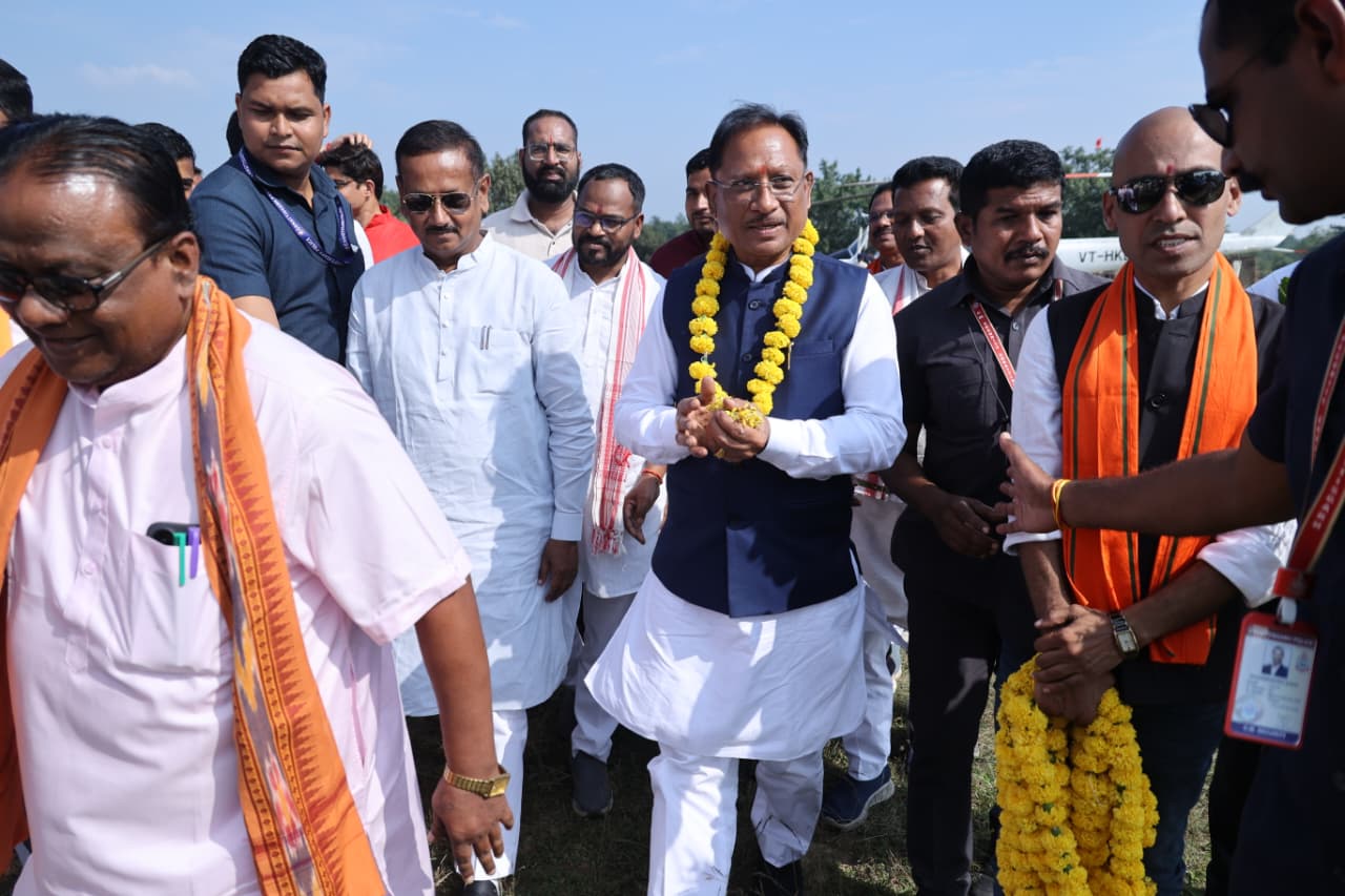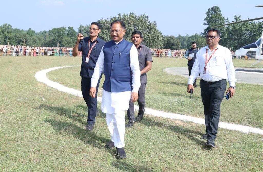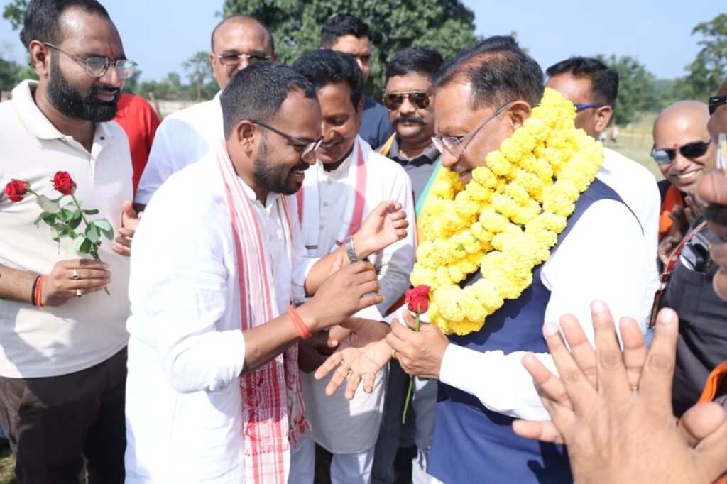 मुख्यमंत्री विष्णुदेव साय लैलूंगा के सिरकीनारा स्कूल ग्राउण्ड हेलीपैड पहुंचे, किया गया आत्मीय स्वागत