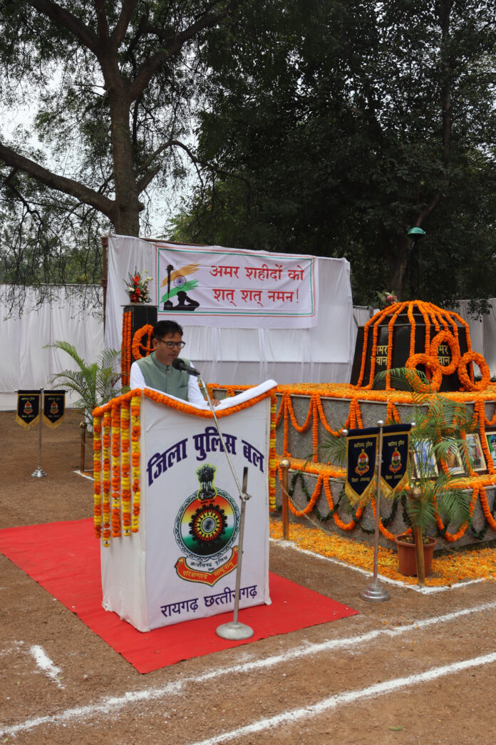 उल्लेखनीय है कि प्रति वर्ष 21 अक्टूबर को मनाए जाने वाले पुलिस स्मृति दिवस पर आज रायगढ़ जिले में शहीद स्मृति गार्डन, उर्दना में भावपूर्ण परेड का आयोजन किया गया। यह दिवस वर्ष 1959 में लद्दाख के हॉट स्प्रिंग क्षेत्र में चीनी सेना के हमले में शहीद हुए दस पुलिस जवानों की स्मृति में मनाया जाता है। इस दिन देश की सुरक्षा की प्रथम पंक्ति में तैनात केन्द्रीय रिजर्व पुलिस बल के गश्ती दल पर चीनी सैनिकों ने घात लगाकर हमला किया था, जिसमें दस वीर जवानों ने मातृभूमि की रक्षा करते हुए अपने प्राणों की आहुति दी थी। तीन सप्ताह बाद चीन ने शहीद जवानों के पार्थिव शरीर भारत को लौटाए थे, जिनका अंतिम संस्कार लद्दाख के हॉट स्प्रिंग में राजकीय सम्मान के साथ किया गया था।