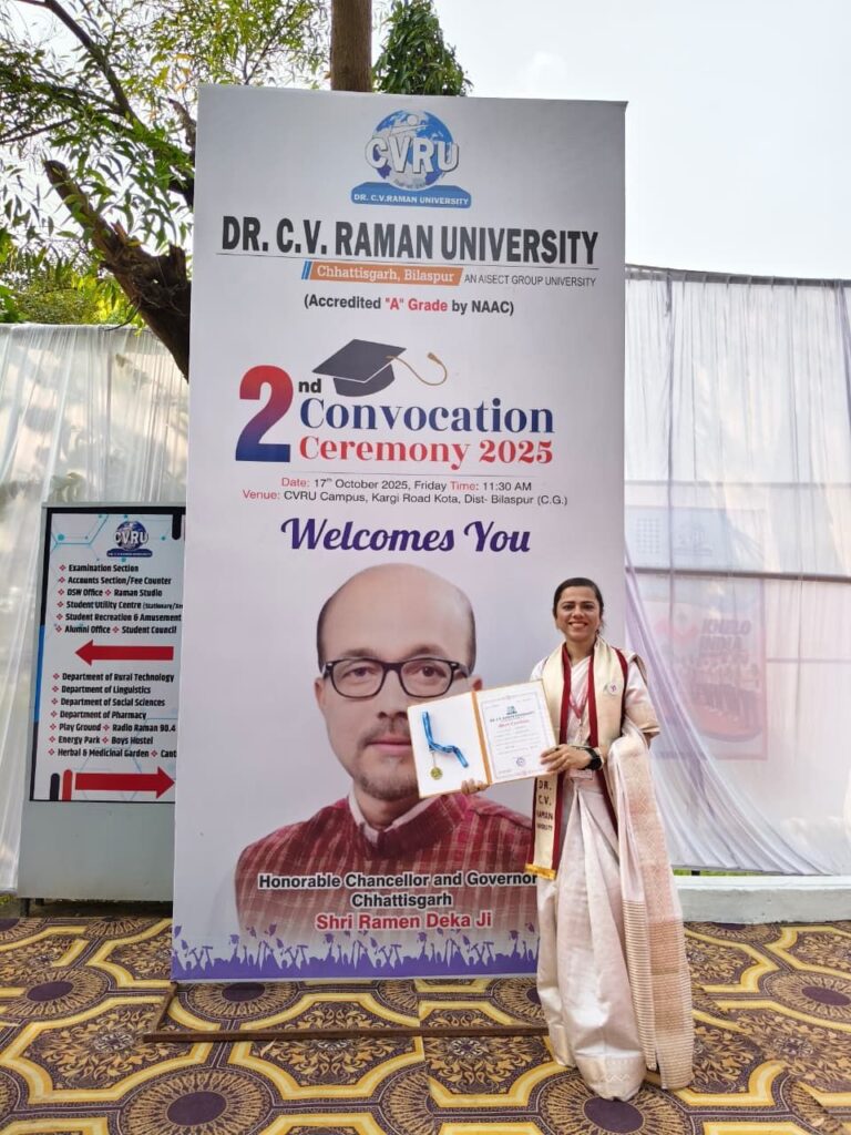 तमनार की कीर्ति गुप्ता को राज्यपाल के हाथों मिला स्वर्ण पदक