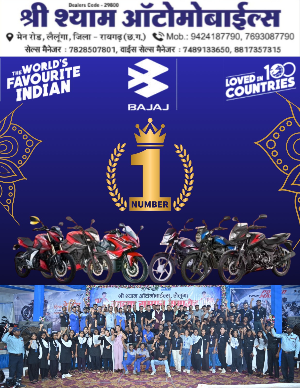 संस्थान ने **Bajaj Two Wheeler के भारत स्तर पर No.01 Seller** का गौरव प्राप्त किया है।