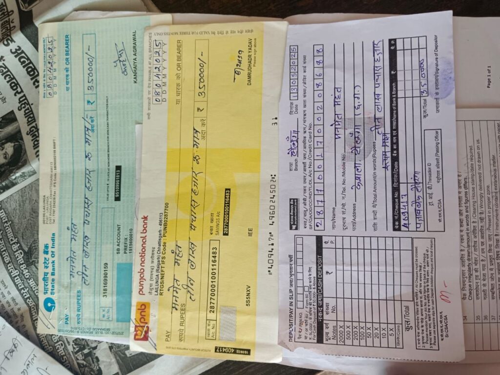 पीड़ित परिवार ने बताया कि दोनों आरोपियों ने जमीन सौदे के दौरान भरोसे का हवाला देकर उन्हें झांसे में लिया। तय सौदे के मुताबिक, मुकडेगा तहसील, जिला रायगढ़ में स्थित जमीन की रजिस्ट्री प्रक्रिया पूरी की गई। रजिस्ट्री ऑफिस में खरीदारों ने यह विश्वास दिलाया कि भुगतान चेक के माध्यम से सुरक्षित रहेगा और कभी भी निकाला जा सकेगा। पीड़ितों को लगा कि सब कुछ पारदर्शी और वैधानिक तरीके से हो रहा है, इसलिए उन्होंने बिना संदेह सौदा पूरा कर दिया।
