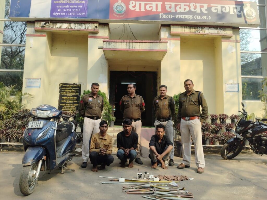 चक्रधरनगर पुलिस ने तीन शातिर चोरों को गिरफ्तार, आरोपियों से कॉपर केबल, पंखे और अन्य कीमती सामग्री बरामद
