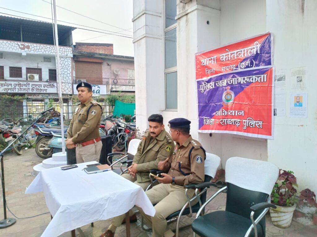 रायगढ़, 22 नवंबर । रायगढ़ कोतवाली थाना परिसर में आज 22 नवंबर 2025 को जनप्रतिनिधियों एवं स्थानीय ऑटो चालकों की उपस्थिति में मासिक बैठक आयोजित की गई। पुलिस अधीक्षक श्री दिव्यांग कुमार पटेल के मार्गदर्शन पर हर माह थाना एवं चौकियों में क्षेत्र में उत्कृष्ट कार्य करने वाले नागरिकों को प्रोत्साहित करने के उद्देश्य से इस कार्यक्रम का आयोजन किया जाता है। इसी क्रम में नगर पुलिस अधीक्षक श्री मयंक मिश्रा की अध्यक्षता में आयोजित बैठक में साइबर डीएसपी श्री अनिल विश्वकर्मा, थाना प्रभारी कोतवाली निरीक्षक सुखनंदन पटेल सहित थाना स्टाफ मौजूद रहा।