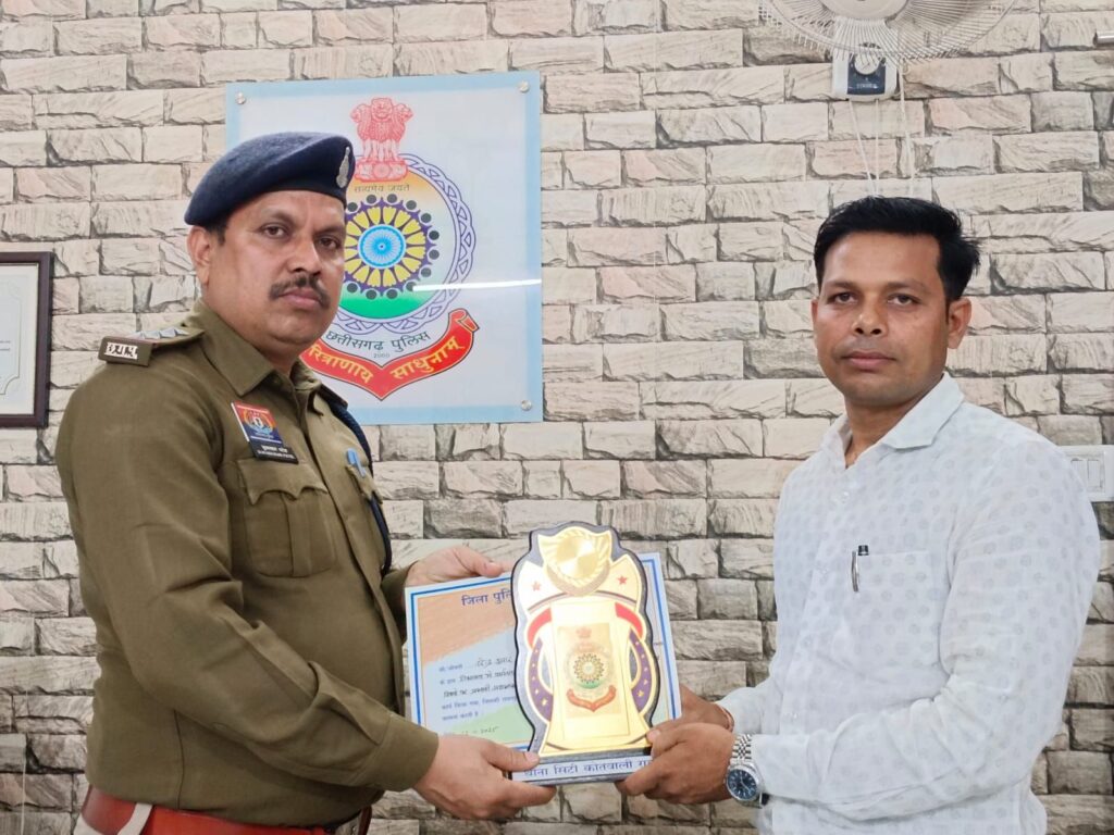 बैठक में विभिन्न क्षेत्र में उत्कृष्ट योगदान देने वाले 14 नागरिकों को प्रशस्ति पत्र और मोमेंटो देकर सम्मानित किया गया। इनमें शासकीय उच्चतर माध्यमिक विद्यालय रामभांठा के प्रभारी प्राचार्य एवं भूगोल व्याख्याता श्री नरेंद्र कुमार पटेल शामिल रहे, जिन्हें छात्रों को पर्यावरण संरक्षण, आपदा प्रबंधन, नशा मुक्ति और सड़क सुरक्षा जैसे महत्वपूर्ण विषयों पर प्रभावी जानकारी देने के लिए सम्मानित किया गया। इसी प्रकार उत्कृष्ठ सेवा कार्य के लिए KGH के वार्ड बॉय हेमंत जायसवाल, नरेंद्र कुमार यादव, अजीत कुमार बरेठ, पुलिस मित्र जोगीडीपा के रमेश चौहान, तथा शहर की स्वच्छता व्यवस्था में योगदान देने वाले स्वच्छता मित्र सुरेंद्र डोंगरे, विक्की सेंदरिया, दुखेंद्र बेहरा, रूश्मिता सांडे, काजल सांडे, रीता सांडे और उमाबाई को भी सम्मान प्रदान किया गया।