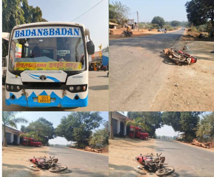 जशपुरनगर से रायगढ़ की ओर चलने वाली बदन यात्री बस ने एक बार फिर रफ्तार और लापरवाही की खतरनाक तस्वीर पेश कर दी। सुरंगपानी इलाके में दोपहर 12 बजे हुए इस भीषण सड़क हादसे ने राहगीरों को दहला दिया। बस की टक्कर इतनी जबरदस्त थी कि सड़क किनारे खड़ी मोटरसाइकिल दो टुकड़ों में बंट गई। हादसे के बाद मौके पर अफरा-तफरी मच गई और कुछ देर के लिए यातायात भी प्रभावित हुआ। और डाईवर गाड़ी लेके लैलूंगा थाना पहुच गया।