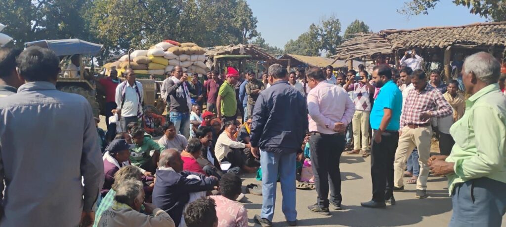 धान खरीदी की मांग पर किसानों का चक्का जाम , तहसीलदार की समझाइस के बाद खुला जाम