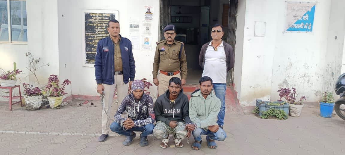 थाना प्रभारी कोतवाली निरीक्षक सुखनंदन पटेल के नेतृत्व में ऐसी कोसो सिंह जगत एवं स्टाफ संदिग्धों की पतासाजी की जा रही थी। इसी दौरान मुखबिर सूचना पर पुलिस ने तीन संदेहियों को हिरासत में लेकर पूछताछ की, जिनसे मेमोरेंडम कथन लिया गया। पूछताछ में आरोपियों ने दिनांक 26.12.2025 की रात्रि को आशा भगत के मकान का ताला तोड़कर चोरी करना तथा उसी मकान में किरायेदार *अनिल कुजूर* के घर (अपराध क्रमांक 05/2026 धारा 331(4), 305 बीएनएस) में भी सेंधमारी कर जेवरात चोरी करना स्वीकार किया।