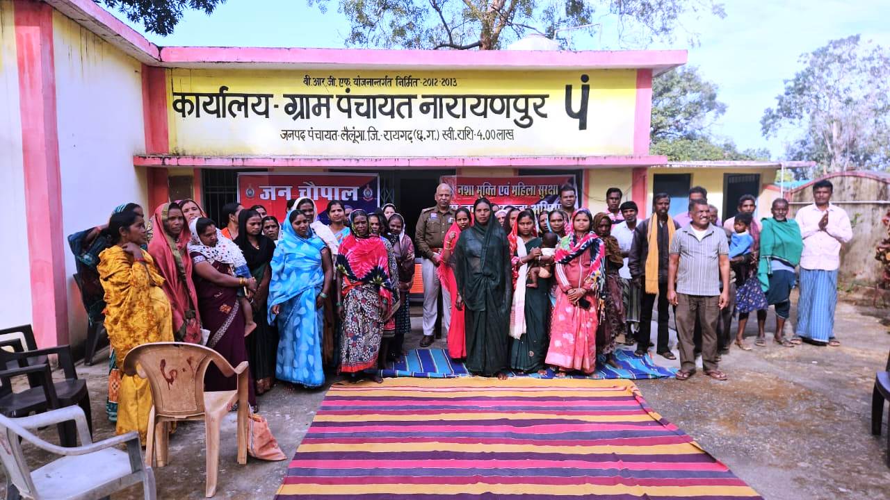 लैलूंगा पुलिस की ग्राम नारायणपुर जन चौपाल में महिला अपराध और साइबर क्राइम पर जागरूकता