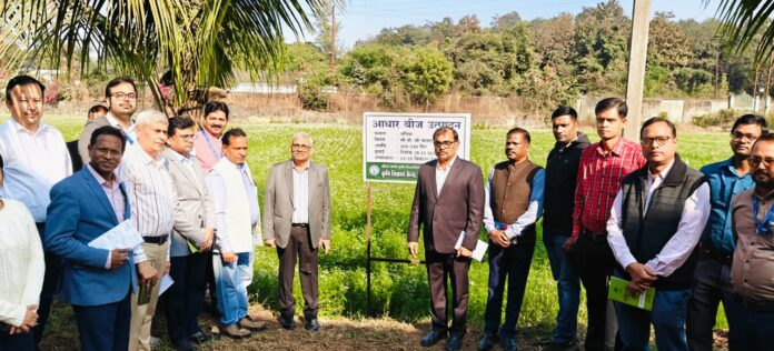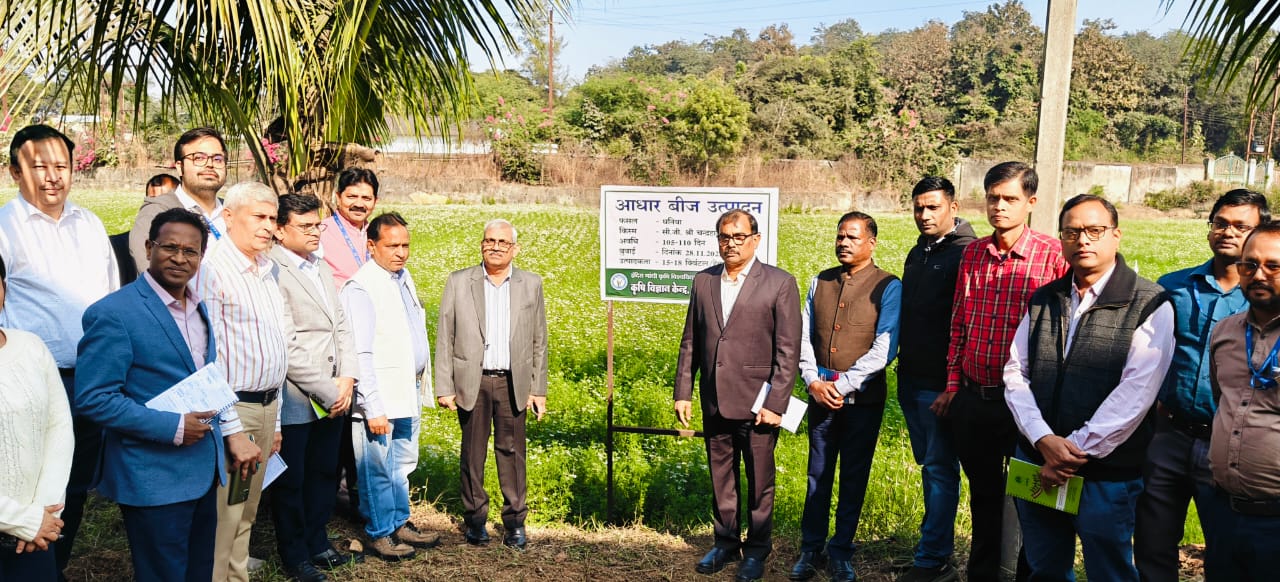 रायगढ़, 16 जनवरी 2026/ नाबार्ड क्षेत्रीय कार्यालय रायपुर, छत्तीसगढ़ के मुख्य महाप्रबंधक डॉ. ज्ञानेन्द्र मणि के नेतृत्व में नाबार्ड के विभिन्न जिलों के जिला विकास प्रबंधकों की टीम ने कृषि विज्ञान केन्द्र, रायगढ़ के प्रक्षेत्र का भ्रमण किया। इस दौरान टीम ने केन्द्र की सभी प्रायोगिक इकाइयों एवं मसाला फसलों के बीज उत्पादन कार्यक्रमों का अवलोकन किया।