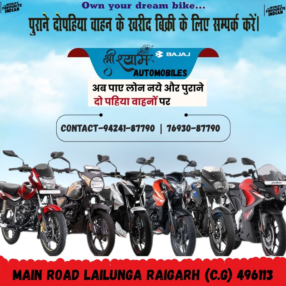 लैलूंगा।क्षेत्र के प्रतिष्ठित वाहन विक्रेता Shree Shyam Automobile pद्वारा ग्राहकों की सुविधा को ध्यान में रखते हुए 🚀 भव्य ‘परिवहन मेला’ का आयोजन किया गया है। इस मेले में सभी प्रमुख कंपनियों की सेकंड हैंड बाइक एवं स्कूटी बेहतरीन कंडिशन में उपलब्ध कराई जा रही हैं।