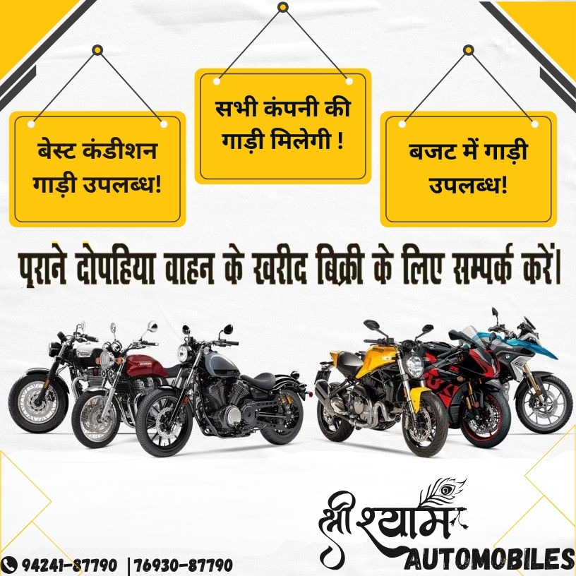рд▓реИрд▓реВрдВрдЧрд╛ред рдХреНрд╖реЗрддреНрд░ рдХреЗ рдкреНрд░рддрд┐рд╖реНрдард┐рдд рд╡рд╛рд╣рди рд╡рд┐рдХреНрд░реЗрддрд╛ Shree Shyam Automobiles рджреНрд╡рд╛рд░рд╛ рдЧреНрд░рд╛рд╣рдХреЛрдВ рдХреА рд╕реБрд╡рд┐рдзрд╛ рдХреЛ рдзреНрдпрд╛рди рдореЗрдВ рд░рдЦрддреЗ рд╣реБрдП ЁЯЪА рднрд╡реНрдп тАШрдкрд░рд┐рд╡рд╣рди рдореЗрд▓рд╛тАЩ рдХрд╛ рдЖрдпреЛрдЬрди рдХрд┐рдпрд╛ рдЧрдпрд╛ рд╣реИред рдЗрд╕ рдореЗрд▓реЗ рдореЗрдВ рд╕рднреА рдкреНрд░рдореБрдЦ рдХрдВрдкрдирд┐рдпреЛрдВ рдХреА ЁЯПНя╕П рд╕реЗрдХрдВрдб рд╣реИрдВрдб рдмрд╛рдЗрдХ рдПрд╡рдВ рд╕реНрдХреВрдЯреА рдмреЗрд╣рддрд░реАрди рдХрдВрдбрд┐рд╢рди рдореЗрдВ рдЙрдкрд▓рдмреНрдз рдХрд░рд╛рдИ рдЬрд╛ рд░рд╣реА рд╣реИрдВред