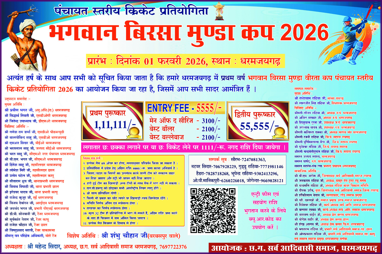 आयोजक ‘छ.ग. सर्व आदिवासी समाज, धर्मजयगढ़’ ने स्पष्ट किया है कि अग्रिम राशि जमा करने के बाद ही टीम का नाम फिक्सर में शामिल किया जाएगा।