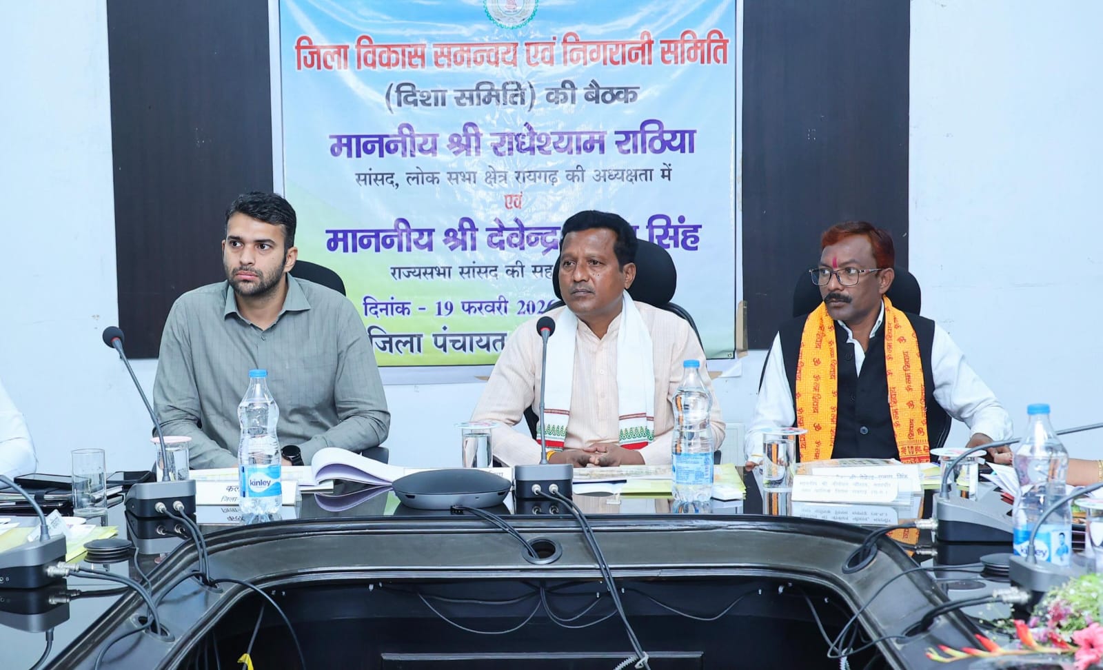 रायगढ़, 19 फरवरी 2026/ जिले में समग्र विकास सुनिश्चित करने तथा शिक्षा, स्वास्थ्य, विद्युत, कृषि और पेयजल सहित बुनियादी सुविधाओं को सुदृढ़ बनाने के उद्देश्य से जिला कलेक्ट्रेट सभाकक्ष में आज जिला विकास समन्वय एवं निगरानी समिति (दिशा) की बैठक आयोजित की गई। बैठक में लोकसभा सांसद श्री राधेश्याम राठिया, लैलूंगा विधायक श्रीमती विद्यावती सिदार, नगर निगम महापौर श्री जीवर्धन चौहान, सभी जनपदों के जनपद पंचायत अध्यक्ष सहित समिति के सदस्यगण, कलेक्टर श्री मयंक चतुर्वेदी, वनमंडलाधिकारी रायगढ़ श्री अरविंद पीएम, जिला पंचायत सीईओ श्री अभिजीत बबन पठारे तथा विभिन्न विभागों के जिला स्तरीय अधिकारी उपस्थित रहे।