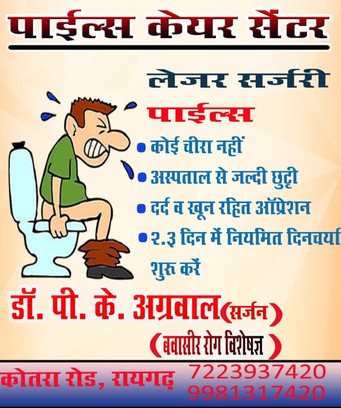 रायगढ़ :- शहर में अब बवासीर (पाइल्स) के मरीजों को दर्दनाक ऑपरेशन और लंबे समय तक अस्पताल में भर्ती रहने की चिंता करने की जरूरत नहीं है। कोतरा रोड स्थित पाइल्स केयर सेंटर में लेजर तकनीक से अत्याधुनिक इलाज की सुविधा शुरू हो चुकी है, जिससे मरीजों को बिना चीरा-टांका, कम दर्द और लगभग खून रहित ऑपरेशन का लाभ मिल रहा है।जानकारी के अनुसार, यहां लेजर सर्जरी के माध्यम से पाइल्स का उपचार किया जाता है। इस पद्धति में पारंपरिक सर्जरी की तुलना में न तो बड़ा चीरा लगाया जाता है और न ही टांकों की जरूरत पड़ती है। यही कारण है कि मरीजों को कम दर्द महसूस होता है और संक्रमण का खतरा भी बेहद कम रहता है।