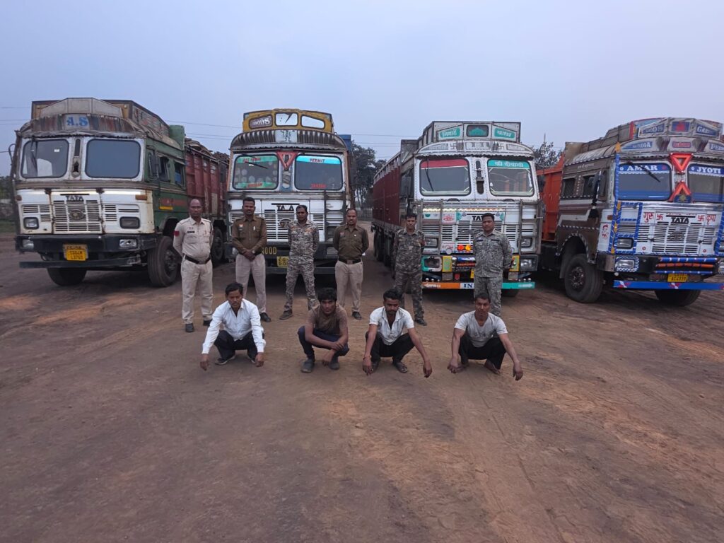 पूंजीपथरा पुलिस ने सामारूमा मेन रोड पर घेराबंदी कर पकड़े कबाड़ से लदे ट्रक, परिवहन के वैध दस्तावेज प्रस्तुत नहीं कर सके चालक