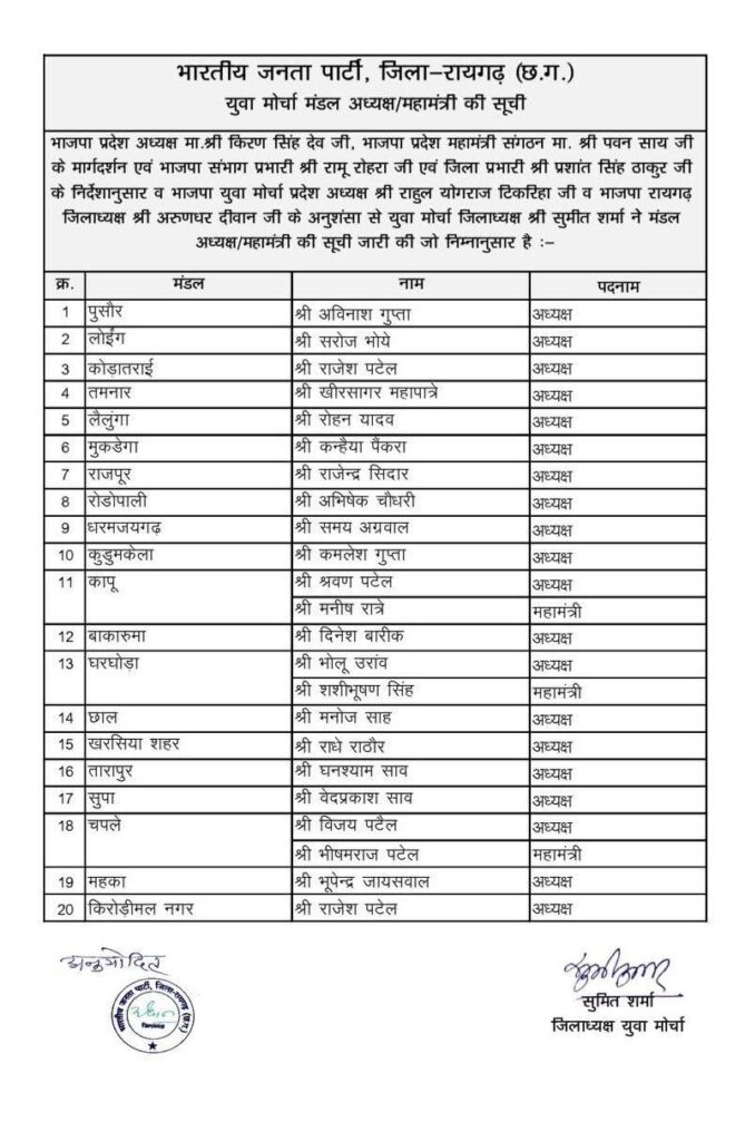 भाजयुमो मंडल लैलूंगा के अध्यक्ष बने रोहन यादव, संगठन में उत्साह की लहर