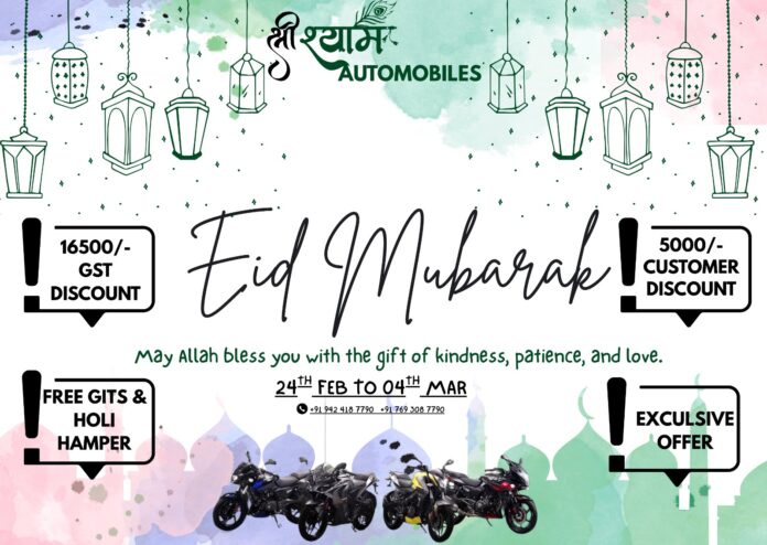 इस रमज़ान बरकतों के साथ खुशियों की नई सवारी घर लाएँ — सिर्फ श्री श्याम ऑटोमोबाइल्स, लैलूंगा में!