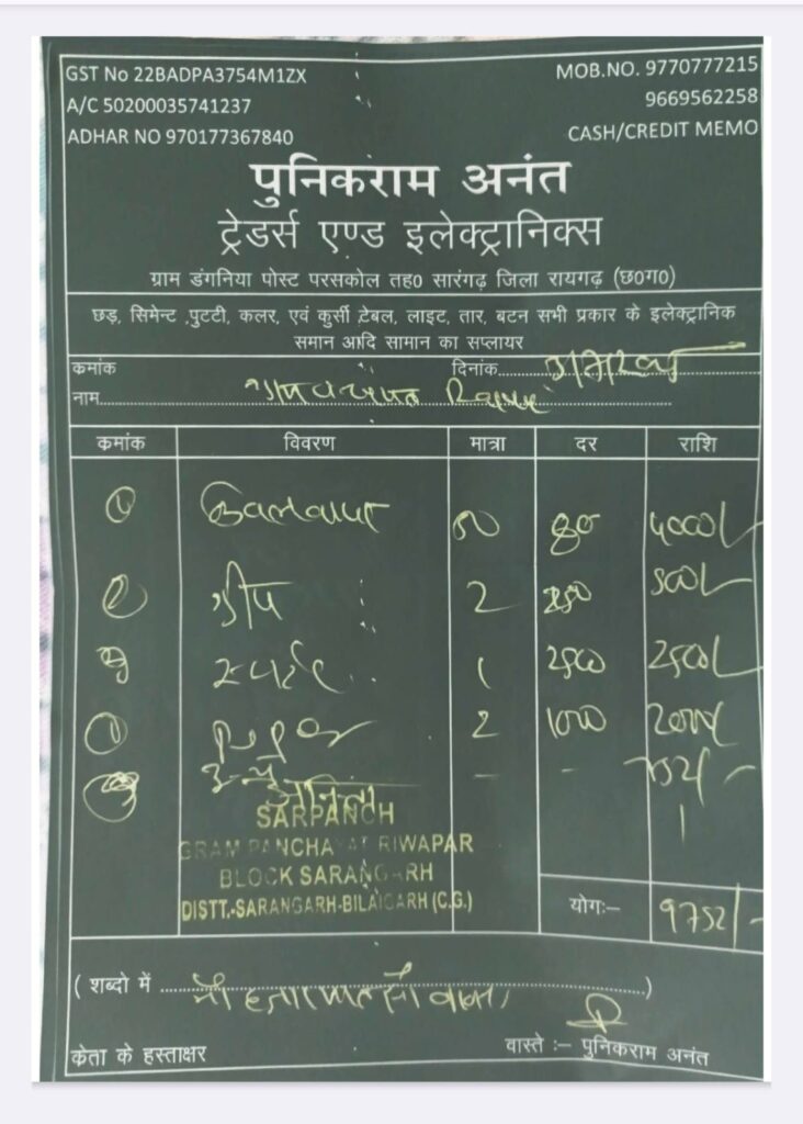 ग्रामीणों के बीच यह चर्चा आम है कि यदि सामग्री असली दुकान से खरीदी जाती, तो पक्का GST बिल जरूर मिलता। बिना बैध बिल लगाकर के राशि निकालना इस बात का पुख्ता सबूत है किः सामग्री की खरीदी ही नहीं हुई सिर्फ कागजों पर फर्जी बिल लगाकर पैसे निकाल लिए गए।