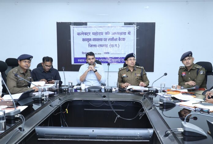 रायगढ़, 25 फरवरी 2026। जिले में कानून व्यवस्था को और अधिक सुदृढ़ एवं प्रभावी बनाने के उद्देश्य से आज कलेक्टोरेट सभा कक्ष में कलेक्टर एवं जिला दण्डाधिकारी श्री मयंक चतुर्वेदी तथा वरिष्ठ पुलिस अधीक्षक श्री शशि मोहन की संयुक्त अध्यक्षता में समीक्षा बैठक आयोजित की गई। प्रातः 11 बजे प्रारंभ हुई बैठक में कानून व्यवस्था से जुड़े 16 महत्वपूर्ण एजेंडों पर विस्तारपूर्वक चर्चा करते हुए संबंधित विभागों के अधिकारियों को स्पष्ट एवं सख्त निर्देश दिए गए।