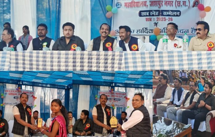 जशपुर। शासकीय एनईएस स्नातकोत्तर महाविद्यालय जशपुर में आयोजित वार्षिक सम्मेलन एवं छात्र स्नेह सम्मेलन गरिमामय और उत्साहपूर्ण वातावरण में संपन्न हुआ। कार्यक्रम में जिला पंचायत जशपुर के अध्यक्ष सालिक साय मुख्य अतिथि के रूप में शामिल हुए। विशिष्ट अतिथि के रूप में जिला पंचायत उपाध्यक्ष शौर्य प्रताप सिंह जूदेव, नगर पालिका अध्यक्ष अरविंद भगत तथा जनपद पंचायत अध्यक्ष गंगा राम भगत उपस्थित रहे। कार्यक्रम की अध्यक्षता महाविद्यालय के प्राचार्य डॉ. अमरेंद्र सिंह ने की। सम्मेलन में एस.डी. गुप्ता, प्रो. प्रवीण सत्पथी, राजेश गुप्ता, नरेश गुप्ता, जिला उपाध्यक्ष भाजयुमो भूषण वैष्णव सहित महाविद्यालय के समस्त प्राध्यापकगण, शिक्षक-शिक्षिकाएं और बड़ी संख्या में छात्र-छात्राएं उपस्थित रहे।