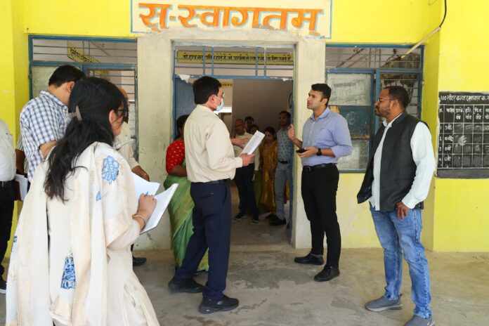 कलेक्टर श्री मयंक चतुर्वेदी ने ग्राम कुंजारा पहुंचकर जीर्णोद्धार कार्यों का निरीक्षण किया तथा गुणवत्ता का विशेष ध्यान रखते हुए निर्धारित समय-सीमा में कार्य पूर्ण करने के निर्देश दिए।