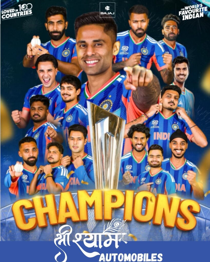 भारत की ऐतिहासिक जीत पर पूरे देश में खुशी और गर्व का माहौल है। इस गौरवपूर्ण अवसर पर श्री श्याम ऑटोमोबाइल्स की तरफ से प्रदेश के सभी खेल प्रेमियों और देशवासियों को हार्दिक बधाई एवं शुभकामनाएं।