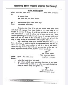 कार्यालय जिला पंचायत रायगढ़ ने ग्राम पंचायत वैस्कीमुड़ा के सचिव अशोक कुमार पटेल तथा ग्राम पंचायत चिराईखार के सचिव श्यामलाल सिदार को कारण बताओ नोटिस जारी कर दिया है।