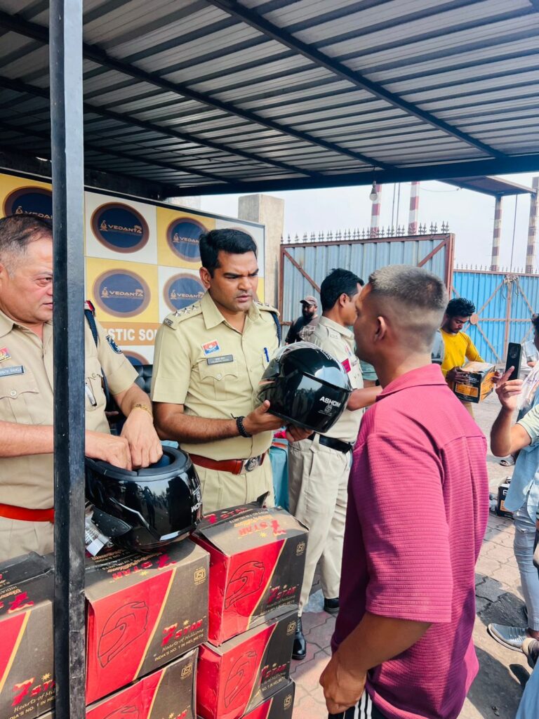 रायगढ़, 27 मार्च 2026 । वरिष्ठ पुलिस अधीक्षक श्री शशि मोहन सिंह के दिशा निर्देशन, अतिरिक्त पुलिस अधीक्षक श्री अनिल सोनी के मार्गदर्शन एवं एसडीओपी खरसिया श्री प्रभात पटेल की पहल पर रामनवमी पर्व के अवसर पर खरसिया पुलिस द्वारा सड़क सुरक्षा को बढ़ावा देने के उद्देश्य से एक विशेष जागरूकता अभियान चलाया गया। इस दौरान ग्राम कुनकुनी में बिना हेलमेट दोपहिया वाहन चलाने वाले चालकों के बीच 200 हेलमेट का वितरण किया गया।