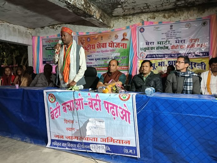 हरदीबाजार – शासकीय उच्चतर माध्यमिक विद्यालय बोईदा के राष्ट्रीय सेवा योजना इकाई के सात दिवसीय विशेष शिविर का आयोजन ग्राम पंचायत मुरली के प्राथमिक शाला में आयोजित किया गया। कार्यक्रम में मुख्य अतिथि कटघोरा विधायक प्रेमचंद पटेल जी की गरिमामयी उपस्थिति रही । तत्पश्चात फुलमाला पहनाकर बुके भेंटकर विधायक प्रेमचंद पटेल जी का स्वागत किया। इस दौरान विधायक प्रेमचंद पटेल जी ने राष्ट्रीय सेवा योजना एनएसएस के छात्र छात्राओं,एन एस एस प्रभारी एवं ग्रामवासियों को आयोजन के लिए धन्यवाद ज्ञापित किया । इस अवसर पर पूर्व मंडल अध्यक्ष दुष्यंत शर्मा, पूर्व युवा आयोग सदस्य रघुराज उइके, सरपंच राजमति दशरथ सिंह कंवर,विदेशी कंवर,तुंगन पटेल,सानिध्य सोलंकी, दिलीप पटेल,मंडल मंत्री सांई मन्नू राठौर,हरीश चौबे, प्राचार्य लखन लाल बंजारे, मनोज चौबे, दुर्गेश मरावी, मनीष पटेल, अनिल पटेल, आनंद राम श्याम,कार्यक्रम प्रभारी राजेंद्र कुमार नायक सहित भारी संख्या में ग्रामीण जन मौजूद रहें ।।
