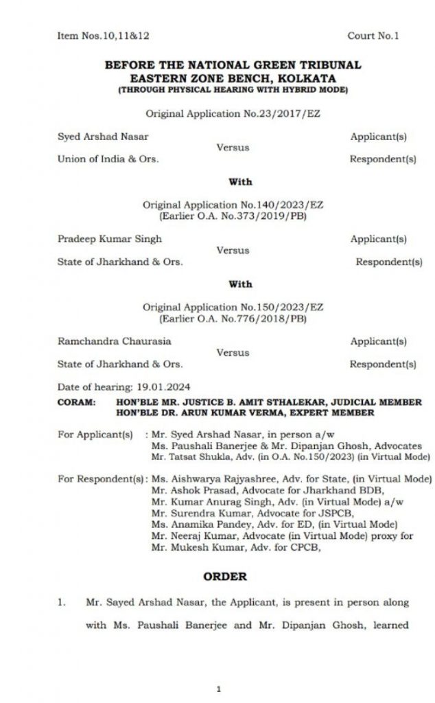 साहिबगंज।जिले के चर्चित सामाजिक कार्यकर्ता सह पर्यावरण प्रेमी सैयद अरशद नसर द्वारा झारखंड के ऐतिहासिक राजमहल पहाड़ के संरक्षण व संवर्धन हेतु व जिले में अवैध रूप से संचालित सभी स्टोन माईंस व क्रशर को बंद कराने के लिए एनजीटी ईस्टर्न जोन कोलकाता में दायर याचिका संख्या-23/2017 की सुनवाई बीते शुक्रवार को पीठ के जुडिशियल मेंबर न्यायमूर्ति बी.अमित स्टालेकर व एक्स्पर्ट मेंबर डा.अरूण कुमार वर्मा ने सुनवाई करते हुए आदेश सुरक्षित रख लिया था.मंगलवार को इस मामले में आदेश आया.जिसमें प्रवर्तन निदेशालय (ईडी) की अधिवक्ता अनामिका पांडे ने ईडी की तरफ़ से कोर्ट को कहा की ईडी की तरफ से हलफनामा तैयार हो गया है जिसे अगली सुनवाई तिथि के पुर्व कोर्ट व याचिकाकर्ता अरशद नसर को उपलब्ध करा दिया जाएगा और दुसरी तरफ झारखंड राज्य प्रदुषण बोर्ड के अधिवक्ता कुमार अनुराग सिंह ने फ्रेश हलफनामा दाखिल करने के लिए और चार सप्ताह का समय देने का कोर्ट से आग्रह किया जिसे एनजीटी ने स्वीकार करते हुए चार सप्ताह का समय दे दिया.सुनवाई में याचिकाकर्ता अरशद नसर व उनकी तरफ से कोलकाता हाईकोर्ट की विद्वान अधिवक्ता पौशाली बनर्जी व दीपांजन घोष उपस्थित थे.एनजीटी की समझ रखने वाले जानकर बताते हैं कि ईडी की तरफ से हलफनामा दाखिल होने पर एनजीटी का पत्थर माफियाओं,कारोबारियों समेत भ्रष्ट पुलिस प्रशासनिक पदाधिकारियों के विरूद्ध कड़ी कार्रवाई व भारी भरकम पर्यावरणीय क्षतिपूर्ति जुर्माना लगाया जा सकता है.इस संभावना से पत्थर माफियाओं समेत पुलिस प्रशासनिक पदाधिकारियों में भय व्याप्त है.इस मामले की अगली सुनवाई 14 मार्च को होगी.अब सभी की नज़रें अगली सुनवाई तिथि पर व ईडी के द्वारा दाखिल की जाने वाली हलफनामा पर टिक गईं है.बताते चले की ईडी ने जिले में भारी भरकम 1250 करोड़ के अवैध खनन के मामले को पकड़ा है.जिसमें कई सफेदपोश जेल के भीतर है तो कुछ बेल पर हैं तो कुछ फरार हैं तो कई ईडी के राडार पर हैं.जिसमें पत्थर माफियाओं,राजनितिज्ञ समेत पुलिस प्रशासनिक पदाधिकारी भी शामिल हैं.