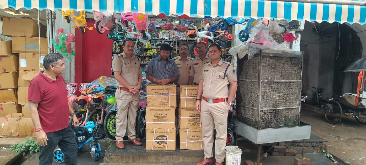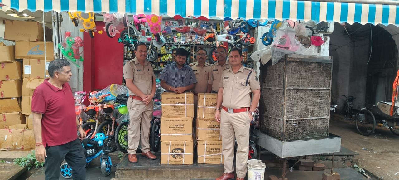*27 जुलाई, रायगढ़* । नाबालिकों द्वारा साइकिल, मोटरसाइकिल पंचर बनाने के लिए उपयोग किए जाने वाले सुलेशन का नशे के रूप में उपयोग करने की मिल रही शिकायतों को गंभीरता से लेते हुए जिले के संवेदनशील पुलिस अधीक्षक श्री दिव्यांग कुमार पटेल द्वारा नगर पुलिस अधीक्षक श्री आकाश शुक्ला को निर्देशित किये कि शहर में घुमंतु किस्म के बालकों पर निगाह रखकर उन्हें नशे से दूर रखने उपर्युक्त उपाय किये जाए। उनके जीवन संवारने के साथ नशे के रूप में ऐसी सामग्रियों का विक्रय करने वालों पर प्रभावी कार्यवाही की जाए निर्देशों के पालन में नगर पुलिस अधीक्षक द्वारा शहर के सभी थाना प्रभारी को घुमंतू बालकों पर निगाह रखने निर्देशित किया गया था । इसी क्रम में आज चक्रधरनगर पुलिस द्वारा थाना क्षेत्र में ऐसे 06 घुमंतू किस्म के बालकों को थाने के महिला हेल्प डेस्क में लाया गया । सभी बालक पूरी तरह नशे के आदि प्रतीत हो रहे थे जिनके अभिभावक/परिजन भी उनके नशाखोरी से परेशान थे । बालकों और उनके परिजनों से पूछताछ करने पर वे बताएं कि रायगढ़ के हनुमान साइकिल स्टोर से सुलेशन आसानी से खरीद लेते हैं । नगर पुलिस अधीक्षक द्वारा पुलिस अधीक्षक को संपूर्ण वास्तुस्थिति से अवगत कराया गया जिनके निर्देशन पर नगर पुलिस अधीक्षक आकाश शुक्ला के नेतृत्व में थाना कोतवाली, थाना चक्रधरनगर की संयुक्त टीम बनाई गई। कार्यपालिक मजिस्ट्रेट तृप्ती चंद्राकर के साथ पुलिस टीम द्वारा की हनुमान साइकिल स्टोर पर रेड किया गया । जहां 6 कार्टून में रखे लगभग 1360 नग सॉल्यूशन मिला। संचालक से नाबालिकों को सॉल्यूशन बिक्री करने संबंध में पूछताछ कर पुलिस ने गवाहों के समक्ष विधिवत 6 कार्टून सुलेशन की जप्ती की गई तथा कार्यपालिक मजिस्ट्रेट की उपस्थिति में संपूर्ण कार्यवाही पूर्ण कर दुकान सील किया गया । थाना प्रभारी सिटी कोतवाली निरीक्षक सुखनंदन पटेल द्वारा अनावेदक हनुमान साइकिल दुकान संचालक आदित्य बेरीवाल पिता अशोक बेरीवाल उम्र 32 साल रायगढ़ के विरुद्ध थाना कोतवाली में धारा 170 BNSS के तहत प्रतिबंधात्मक कार्यवाही की गई है । उक्त रेड कार्यवाही में टीआई सुखनंदनपटेल एसआई ऐनु कुमार देवांगन , प्रधान आरक्षक श्रीराम साहू तथा थाना चक्रधरनगर से निरीक्षक प्रशांत राव आहेर , प्र. आर. महेंद्र कर्ष , आरक्षक चूड़ामणि गुप्ता , सुशील मिंज एवं अन्य स्टाफ़ शामिल रहे