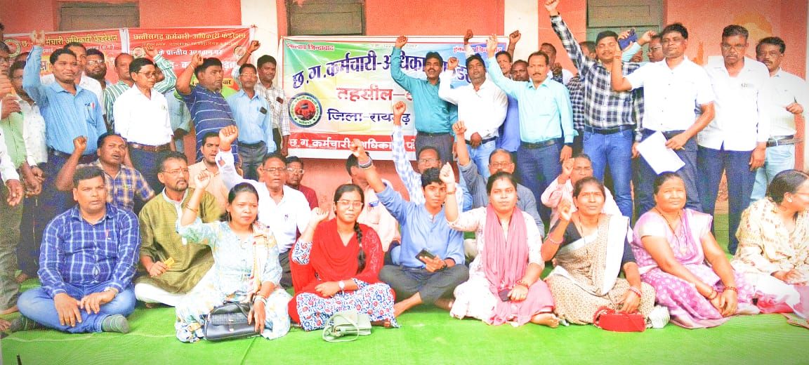 हड़ताल में शामिल कर्मचारी अधिकारी ने बुलंद नारों के साथ छत्तीसगढ़ सरकार तक चार सूत्रीय मांग की आवाज को पहुंचाते हुए आज के हड़ताल को सफल ढंग से सम्पन्न किया।