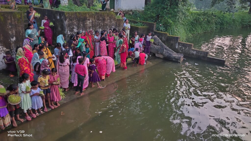 सुबह से ही गांव की महिलाएं और कुंवारी लड़कियां गेहूं और जौ के बीज से तैयार की गई भोजली को सजाकर सिर पर टोकरी रखकर पारंपरिक गीत गाती हुई जुलूस की शक्ल में घाट की ओर निकलीं। झांझ, मंदार और नगाड़ों की थाप पर गूंजते गांव में जब महिलाएं मंगल गीत गा रही थीं, तो पूरा वातावरण आध्यात्मिक और सांस्कृतिक रंग में रंग गया। बच्चे, बुजुर्ग और युवा सभी इस जुलूस का हिस्सा बने।