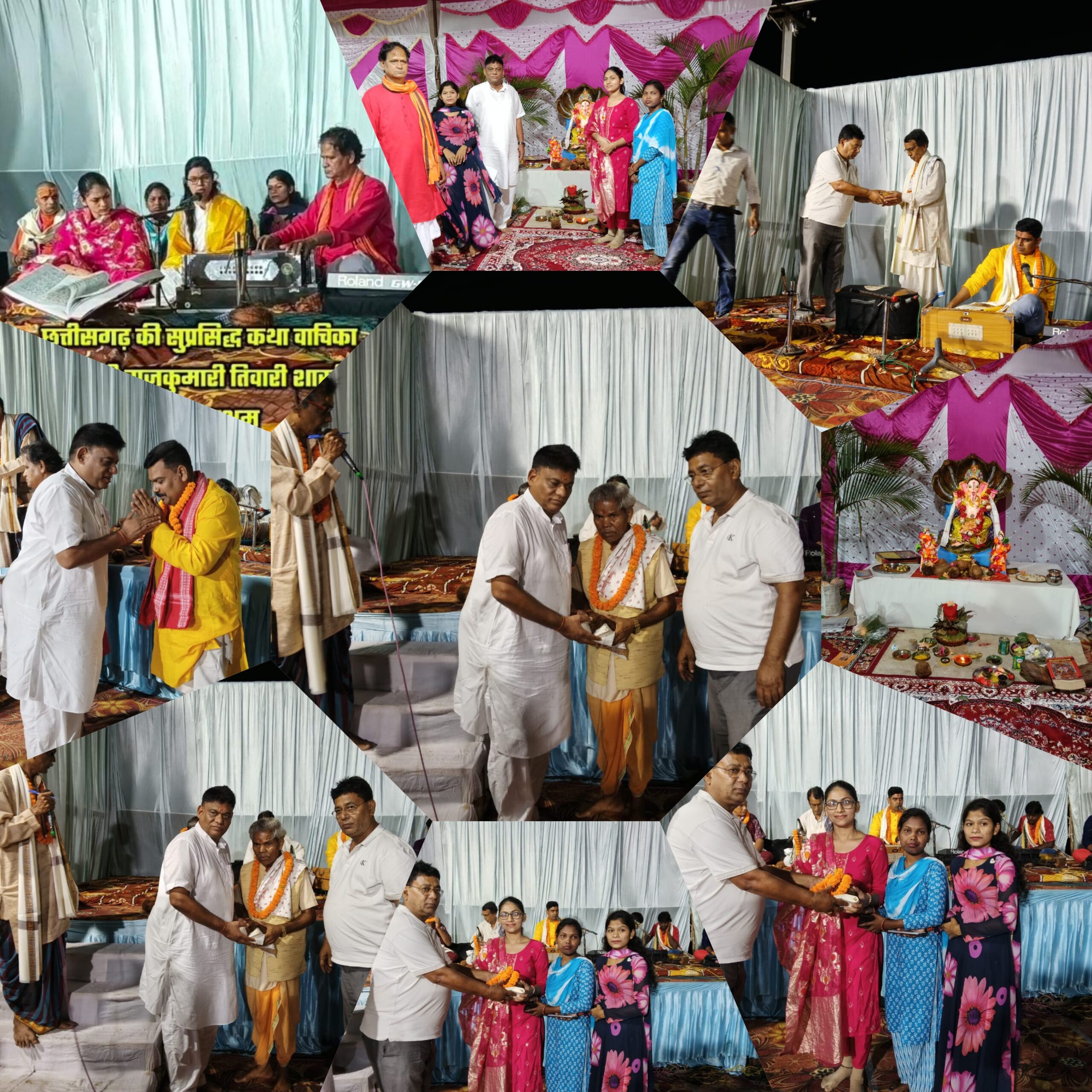 28 से 30 अगस्त तक संध्या भजन और आरती ने वातावरण को भक्तिरस से सराबोर कर दिया। 2 सितंबर को पुनः भक्ति की धारा बही, जबकि 2 सितंबर रात को संगीतमय सुंदरकांड और रामायण मय प्रवचन ने श्रद्धालुओं को आध्यात्मिक अनुभूति से भर दिया। सुप्रसिद्ध भजन गायकों चाहत खान, ललिता नाग और रीना पैकरा ने अपनी गायकी से मन मोह लिया, वहीं प्रवचन में किशोरी राजकुमारी तिवारी शास्त्री की वाणी ने श्रोताओं को भावविभोर कर दिया।