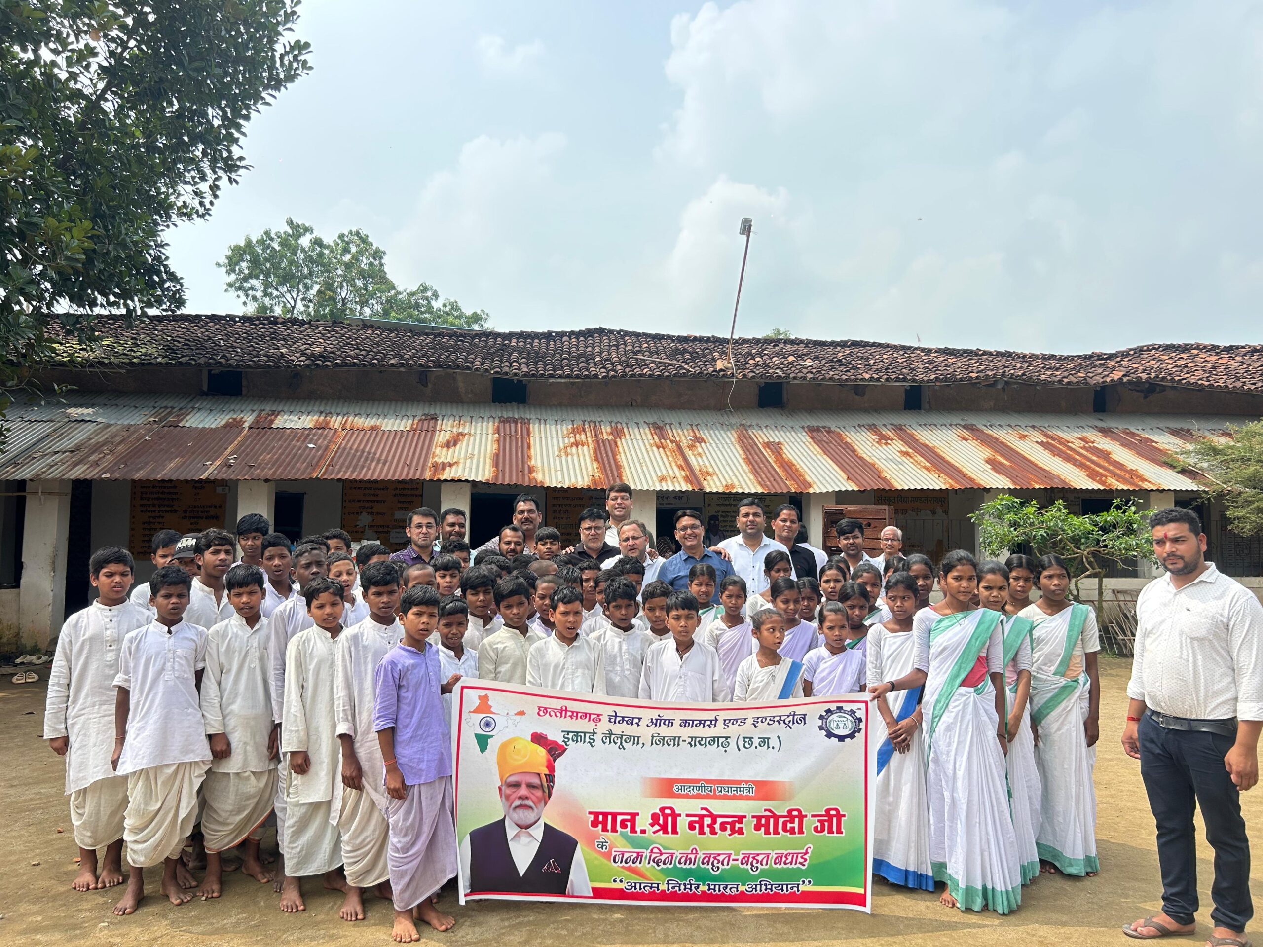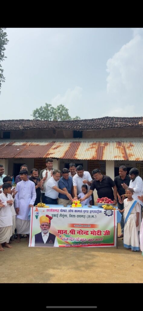 लैलूंगा,/ छत्तीसगढ़ चेंबर ऑफ कॉमर्स एंड इंडस्ट्रीज इकाई लैलूंगा ने आज यशस्वी प्रधानमंत्री माननीय नरेंद्र मोदी जी का जन्म उत्सव सेवा और समर्पण के भाव से मनाया। कार्यक्रम का आयोजन श्री गहिरा गुरु बाल आश्रम लैलूंगा में किया गया, जहाँ बच्चों के साथ मिलकर केक काटा गया और उत्सव का माहौल गूँज उठा।