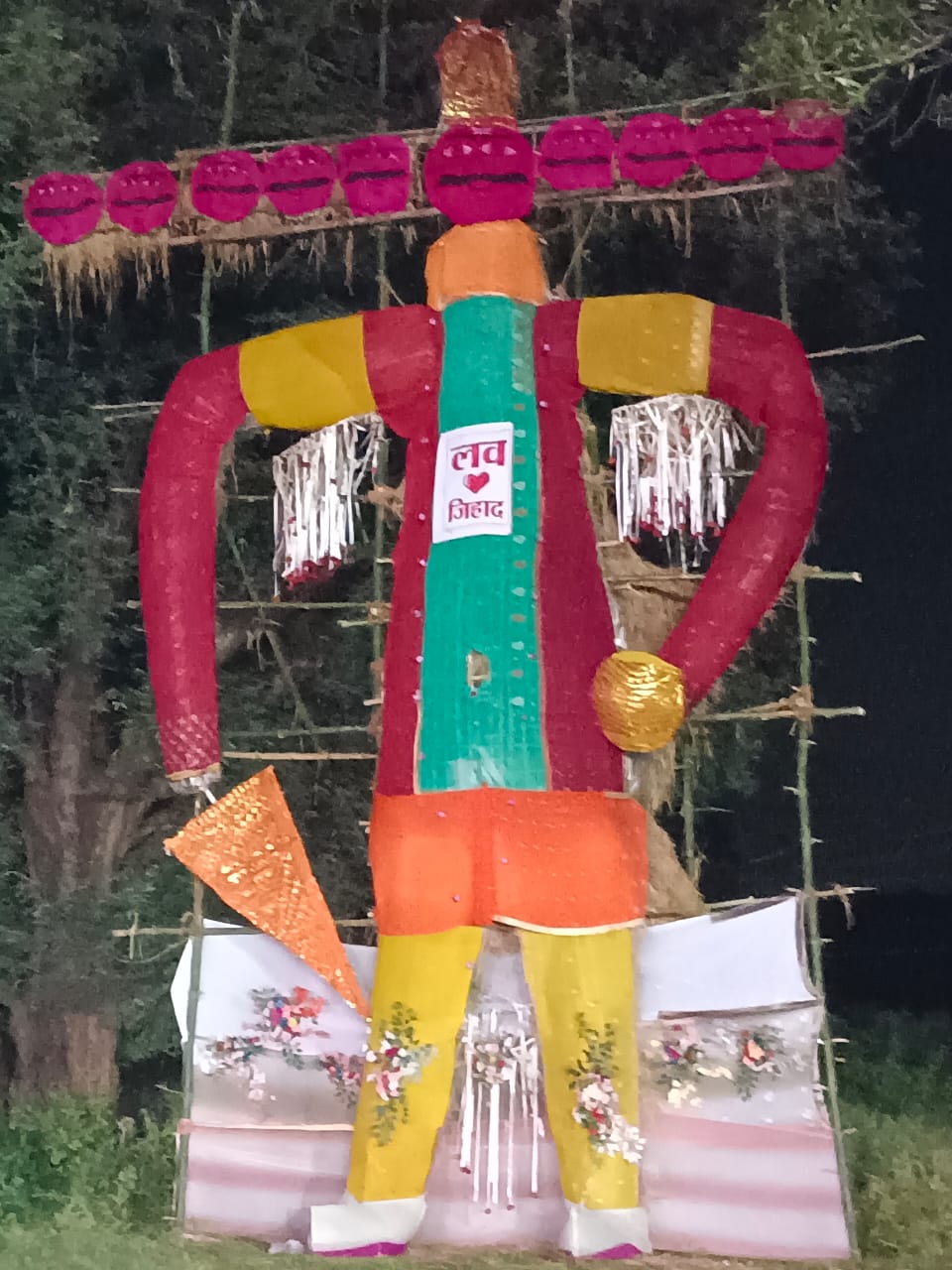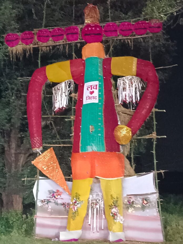 “लब जिहाद का अंत करो, समाज को बचाओ” जैसे नारों से पूरा इलाका गूंज उठा। आयोजकों ने मंच से कहा कि यह रावण सिर्फ बुराई का प्रतीक नहीं बल्कि समाज में फैल रही गलत प्रवृत्तियों के खिलाफ जनता की आवाज़ है। जैसे ही शाम ढली और मशाल जलाई गई, देखते ही देखते रावण के पुतले को आग के हवाले कर दिया गया।