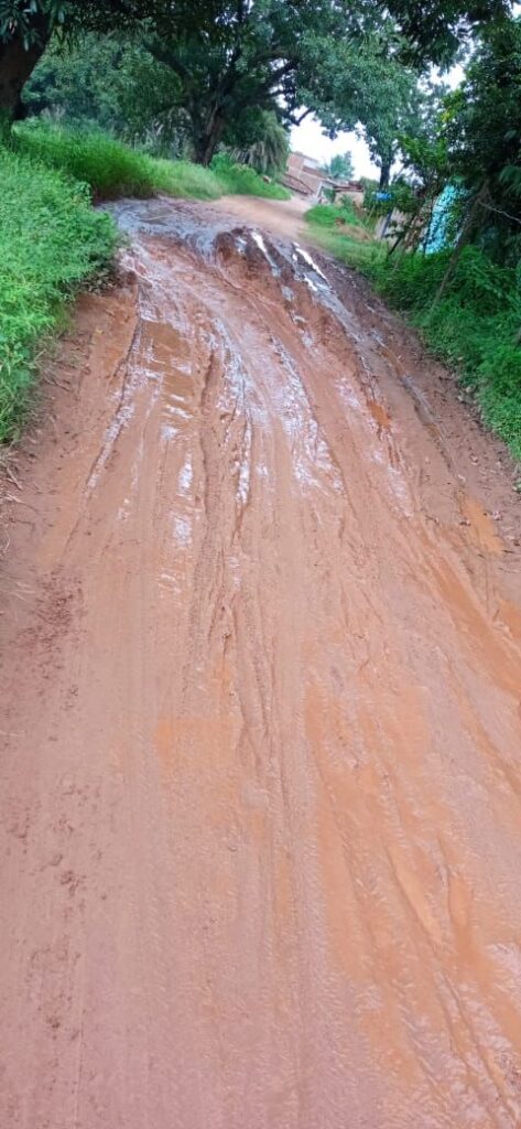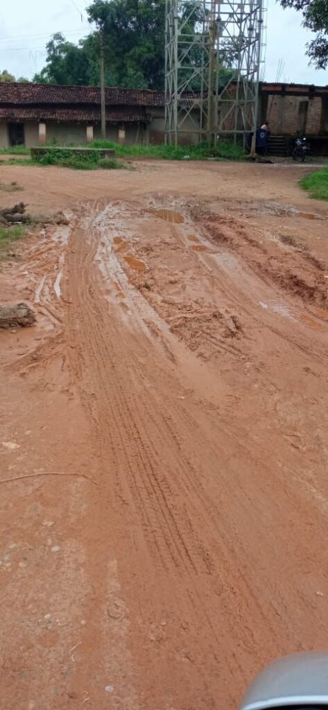 गांव के बीच से गुजरने वाला यह रास्ता स्कूल और आंगनबाड़ी केंद्र तक जाने का मुख्य मार्ग है। नालियां जाम हैं, पानी का निकास नहीं है, जिससे सड़क हर समय कीचड़ में डूबी रहती है। गाड़ियों का निकलना तो दूर, दोपहिया वाहन तक फंस जाते हैं। लोग मजबूरी में चप्पल उतारकर नंगे पैर चलने को मजबूर हैं।