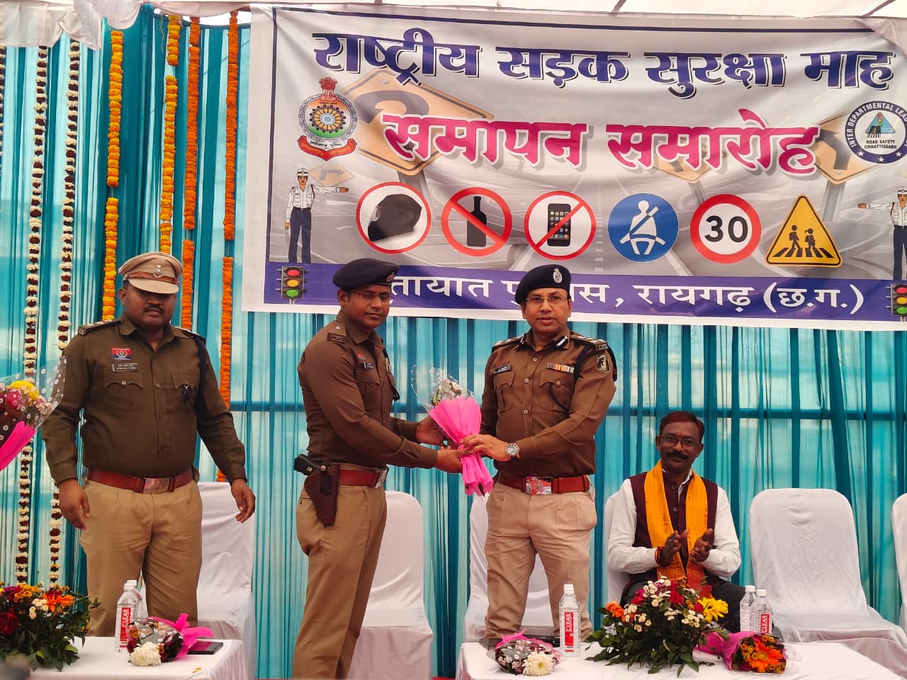 रायगढ़, 31 जनवरी। सड़क दुर्घटनाओं में कमी लाने तथा आम नागरिकों को यातायात नियमों के प्रति जागरूक करने के उद्देश्य से जिले में 01.01.2026 से 31.01.2026 तक मनाए गए राष्ट्रीय सड़क सुरक्षा माह का आज पुलिस सामुदायिक भवन परिसर में समापन किया गया। समापन कार्यक्रम में रायगढ़ पुलिस द्वारा आयोजित विभिन्न जागरूकता गतिविधियों में बढ़-चढ़कर हिस्सा लेने वाले स्कूली बच्चों को अतिथियों द्वारा पुरस्कार एवं प्रशस्ति पत्र देकर सम्मानित किया गया। साथ ही कार्यक्रम को सफल बनाने में सहभागी रहे शासकीय एवं गैर शासकीय संस्थाओं का जिला पुलिस द्वारा आभार व्यक्त किया गया।