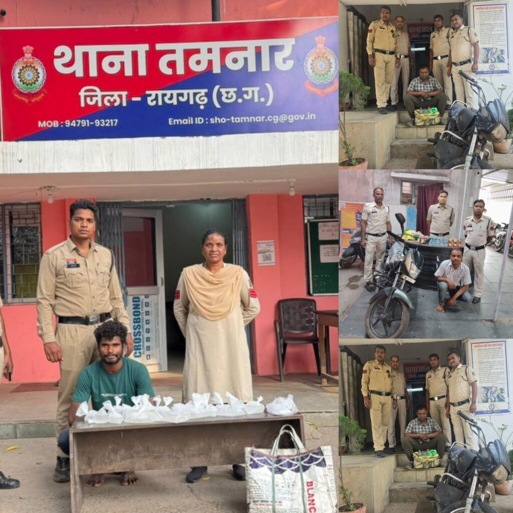 *रायगढ़, 06 अप्रैल । वरिष्ठ पुलिस अधीक्षक श्री शशि मोहन सिंह के निर्देशन में जिले में चलाए जा रहे “ऑपरेशन आघात” के तहत अवैध शराब के विरुद्ध व्यापक और लगातार कार्रवाई की जा रही है। पिछले 48 घंटों के भीतर तमनार, छाल, पुसौर और जूटमिल थाना क्षेत्रों में पुलिस टीमों द्वारा प्रभावी कार्रवाई करते हुए करीब 70 लीटर अवैध शराब जब्त कर आरोपियों से शराब परिवहन में प्रयुक्त 3 मोटर सायकलो को गिरफ्तार कर न्यायिक रिमांड पर भेजा गया है।