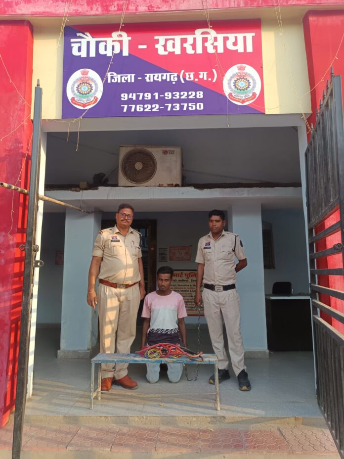 केबल तार व लोहे का एंगल चोरी का आरोपी गिरफ्तार, चौकी खरसिया पुलिस की कार्रवाई