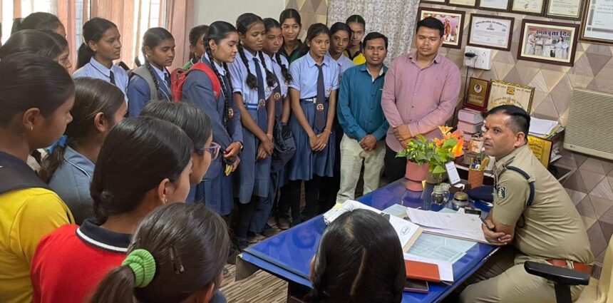 तिल्दा नेवरा। स्वामी आत्मानंद स्कूल तिल्दा नेवरा केछात्राओं ने पुलिस थाना का भ्रमण किया। इस दौरानछात्राओं ने पुलिस की कार्यप्रणाली को भी समझा और बड़े होकर देश की सेवा करने की भी प्रेरणा ली। छात्राओं ने काउंटर से लेकर मालखाना,बंदी गृह , लॉकअप, कम्प्यूटर रूम, थाना प्रभारी रूम को देखा और हथियार, वायरलेस सिस्टम, पुलिस सुरक्षा कवच, एफआईआर लिखने सहित अन्य जानकारी ली। इस मौके पर थाना प्रभारी रमाकांत तिवारी ने छात्राओं को पुलिस कर्तव्य के बारे में जानकारी दी और उनका मार्गदर्शन किया छात्राओं को गुड टच-बैड टच के बारे में बता कर जागरूक किया अनैतिक व्यापार अधिनियम के कानूनी प्रावधानों पुलिस थानों में संचालित महिला डेस्क, परिवार परामर्श केंद्र, ऊर्जा डेस्क व निर्भया पेट्रोलिंग की जानकारी दी। थाना प्रभारी ने बताया कि पाक्सो एक्ट के तहत नाबालिग बालिकाओं को व्यक्ति द्वारा घूरना, लगातार पीछा करना भी संज्ञेय अपराध है। इसकी रिपोर्ट थाने पर की जा सकती है माननीय सर्वोच्च न्यायालय द्वारा बालक बालिकाओं व महिलाओं के साथ हिंसा के लिए दिए गए निर्देशों को भी बताया गया।