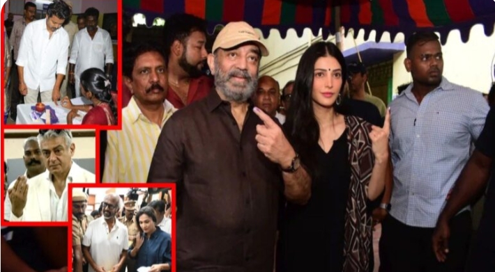 चेन्नई में फिल्म अभिनेता अजीत कुमार और विजय मतदान करने पहुंचे। उनकी एक झलक पाने के लिए बड़ी संख्या में लोग जुट गए, जिससे कुछ समय के लिए मतदान केंद्र के बाहर अफरा-तफरी का माहौल बन गया। वहीं, साउथ सुपरस्टार रजनीकांत और कमल हसल ने भी अपने मताधिकार का प्रयोग किया। कमल हासन अपनी बेटी श्रुति हसन के साथ मतदान केंद्र पहुंचे।